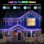 Safe & Energy-Efficient LED Design: Safety is key when decorating for the holidays, especially with long-lasting displays. These icicle fairy lights use low-voltage LED technology, ensuring they’re cool to the touch and safe for both indoor and outdoor use. Not only are they safe, reducing electricity costs while providing a brilliant, long-lasting glow. Celebrate in style without worrying about your energy bill.