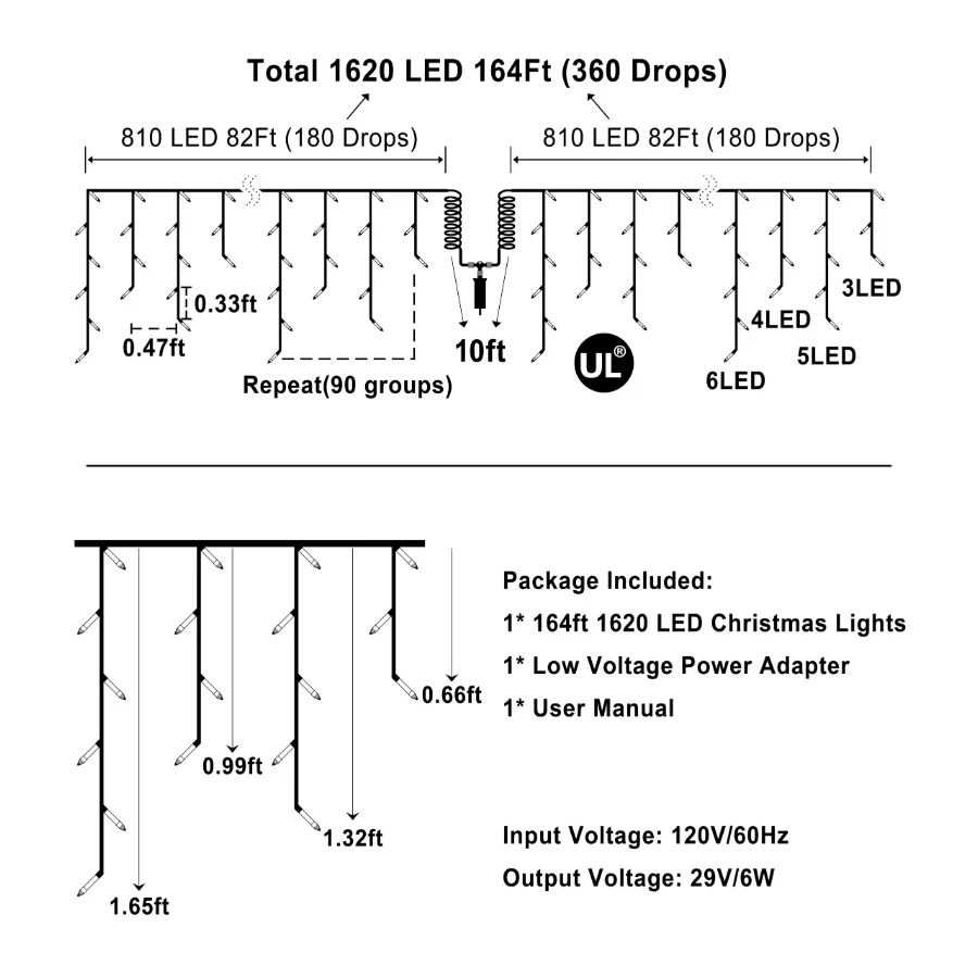 A Winter Wonderland for Your Home: Transform your home into a breathtaking winter wonderland with these 164ft iciclelights, featuring 1620 LEDs and 360-drop design. These cascading icicles create a luxurious holiday display, perfect for decorating rooflines, balconies, and fences. Let your house become the brightest and most festive on the block, spreading Christmas magic to everyone who passes by.