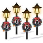 Christmas Solar Pathway Lights Outdoor, 4 Pack 21Inch Waterproof Yard Walkway Street Lights with Ribbon & Wreath photo review