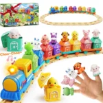 DEVELOP HAND-EYE COORDINATION WITH THE BARNS: Our Christmas train set includes 6 festive barns that help teach color recognition. By matching each barn to its corresponding roof, and through loading, stacking, and sorting activities, kids build fine motor skills and hand-eye coordination—making early learning fun and interactive.