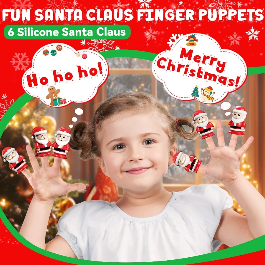 FUN SANTA CLAUS FINGER PUPPETS: Bring the Christmas spirit to life with 6 vibrant, soft silicone Santas! Each durable puppet has a finger hole sized for small hands, encouraging hours of creative role-play. Watch your child’s imagination grow while improving fine motor control through interactive fun—and create special bonding moments together.