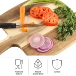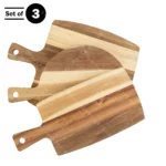 DURABLE DESIGN. Made of acacia wood, the boards use durable materials for lasting use and feature ergonomic handles for an easy grip, making it simpler to carry the boards from room to room.