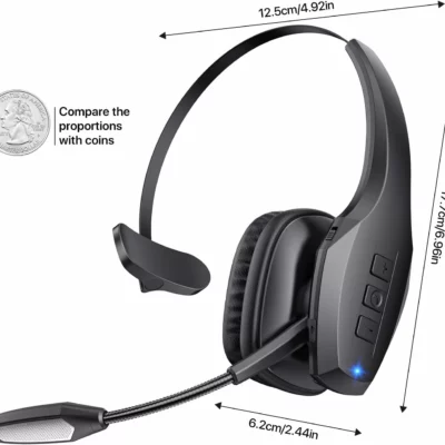 “Bluetooth Headset V5.2 Wireless with Mic, 60Hrs Noise Canceling Single Ear Trucker Headphone with Mute for PC Phone Office” has been added to your cart. View cart