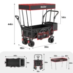 Removable Canopy for Extra Protection – Equipped with a removable canopy, this wagon offers added sun protection for your belongings, kids, or pets. The canopy is easy to install or remove, giving you flexibility for various outdoor activities like shopping, camping, or trips to the beach.