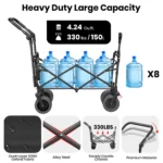 330lbs Weight Capacity for Heavy Loads – Built to handle heavy-duty tasks, the GVDV Collapsible Wagon boasts a 330lbs weight capacity. It’s perfect for carrying large loads, whether it’s groceries, camping gear, or even kids and pets, making it a reliable choice for all your hauling needs.