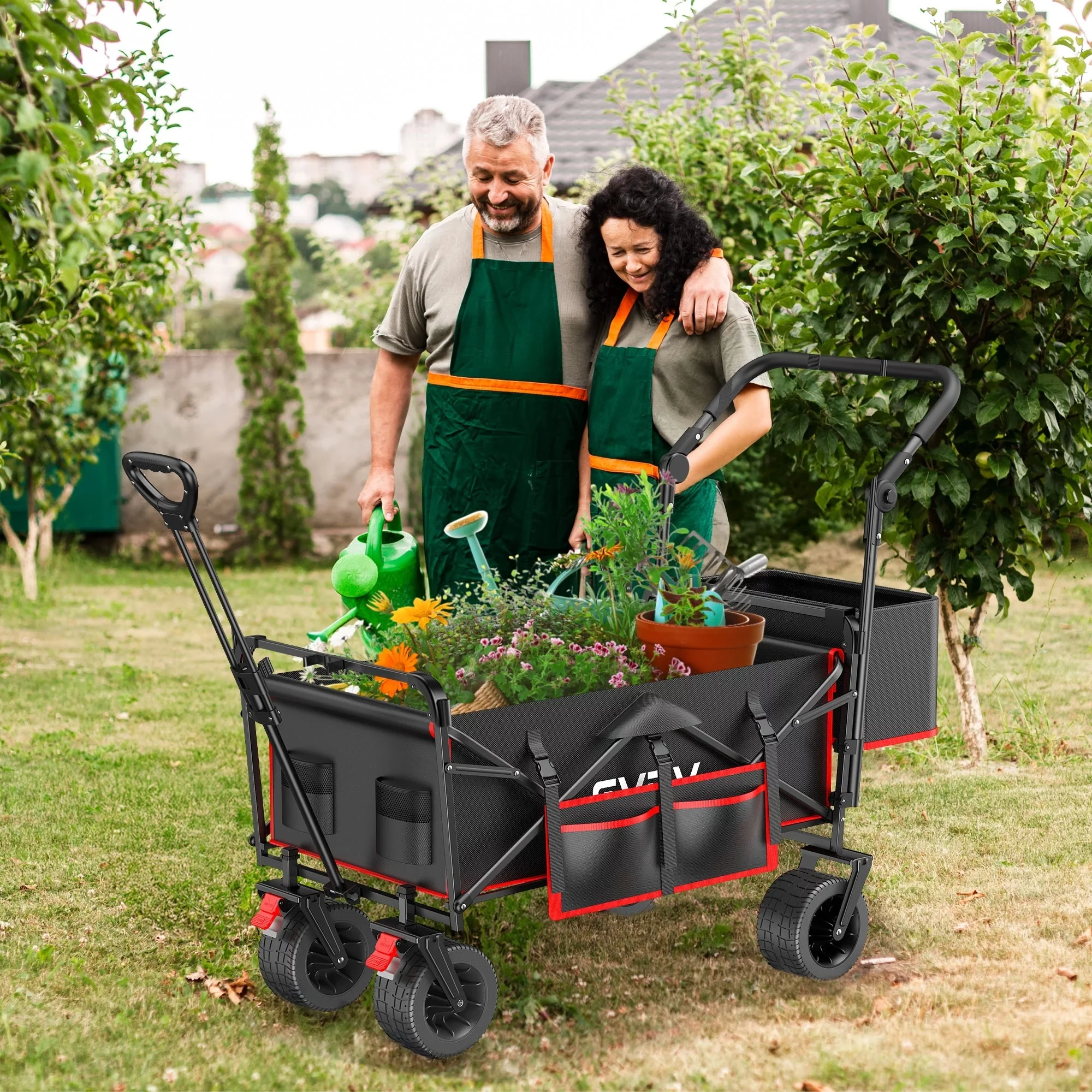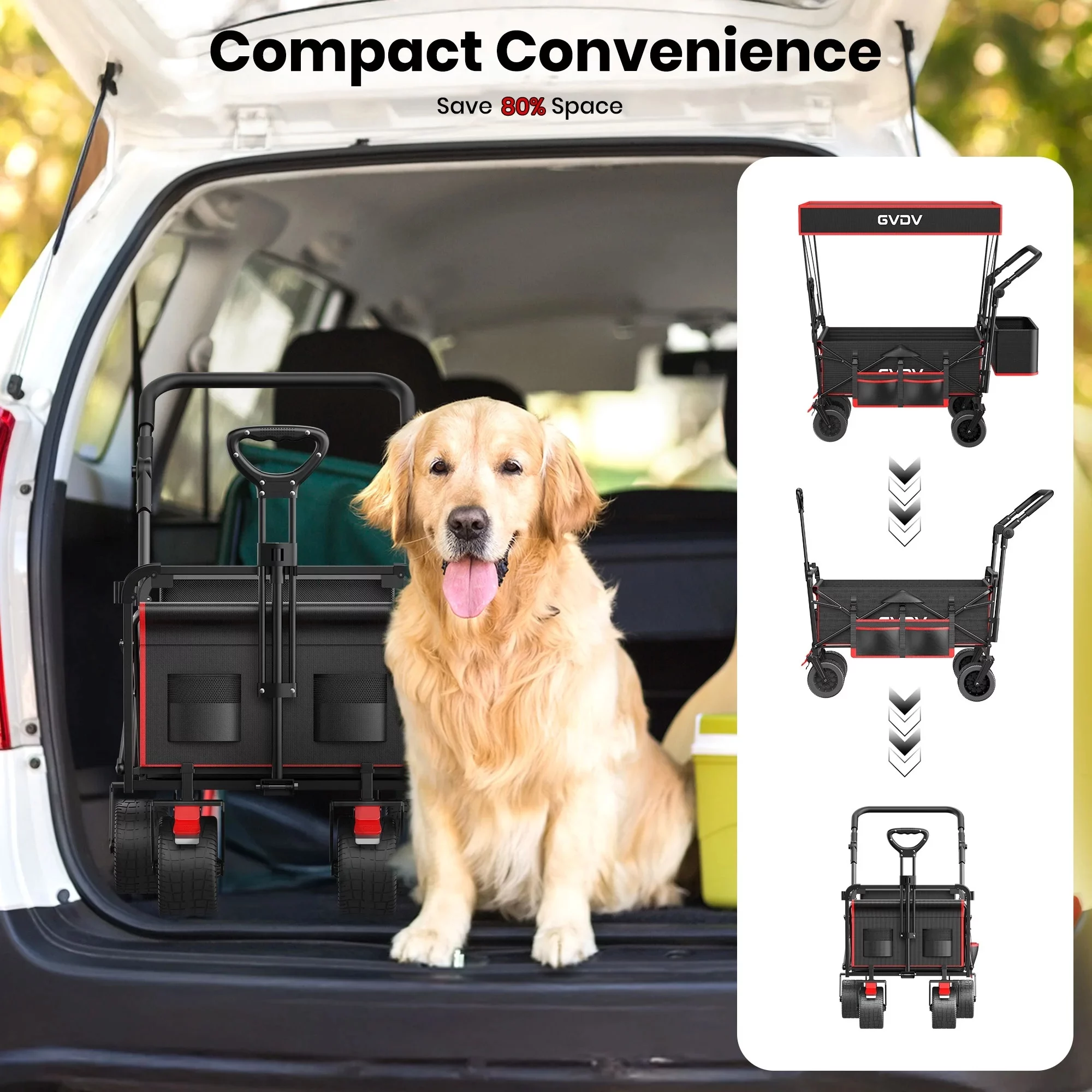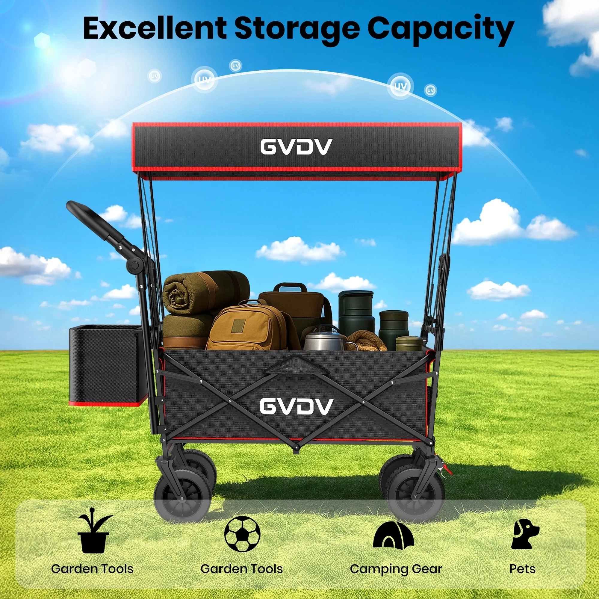 Foldable Design for Easy Storage – The GVDV Collapsible Wagon Cart features a convenient foldable design, allowing it to collapse into a compact size for easy storage in your car trunk, garage, or closet. Ideal for on-the-go use, it saves space while offering portability.