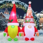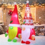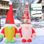 5.2 FT Christmas BLOW UP – COMIN Christmas Inflatable Gnome Brothers with warm LED glow creates the most charming holiday display. These cheerful little decorators will brighten your yard with festive spirit day and night.