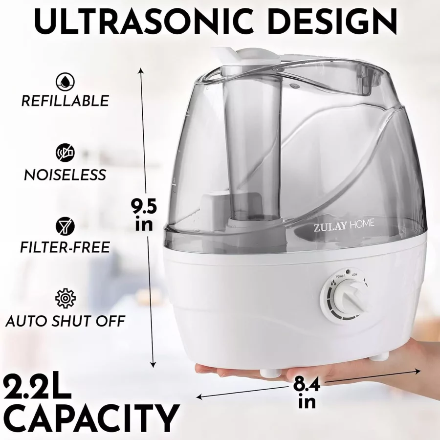 Cool Mist Humidifier – Quiet 2.2 L Bedroom Air Moisturizer for Comfortable Sleep