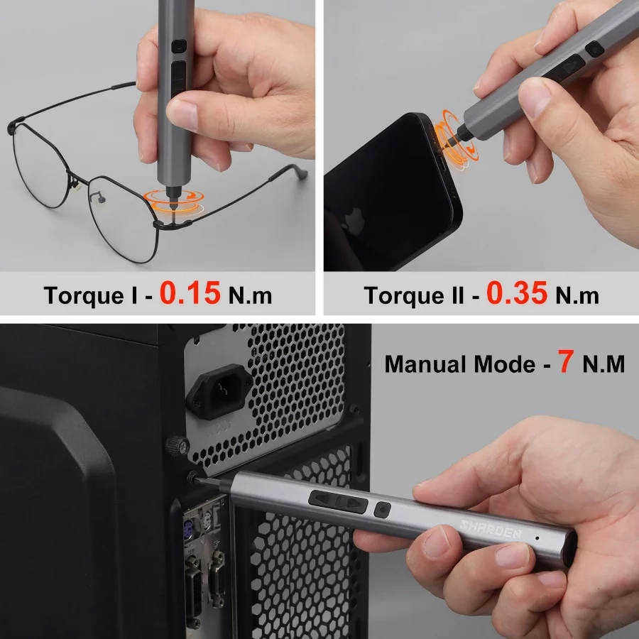 Precision Torque: SHARDEN small electric screwdriver is equipped with a high torque of 0.35 Nm and a low torque of 0.15 Nm, as well as a manual torque of 7 Nm, ensuring precise force whenever you need it. This electric precision screwdriver is perfect for gadgets like computers, tablets, smartphones, watches, electronic wristbands, cameras, precision instruments, and more.
