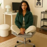 I absolutely love this chair! It’s the perfect blend of comfort and style—exactly what I needed for my vanity (and it doubles as a desk chair when I work from home). The design is modern and elegant, and it adds such a nice touch to my room. Assembly was a breeze—took me less than 15 minutes and everything I needed was included. The cushion is soft and supportive, and the height adjustment works smoothly. I can sit in it for hours without any discomfort. It also rolls easily and feels sturdy without being bulky. The material is easy to wipe clean, which is a big plus if you’re using it near makeup or drinks. If you’re looking for a cute, functional, and comfortable chair for your vanity or workspace, this one is a winner. I’m super happy with my purchase!