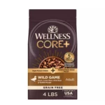 Feed your dog’s primal instincts with Wellness CORE Wild Game Dry Dog Food, a high-protein, nutrient-rich formula that blends crunchy kibble with 100% freeze-dried raw pieces of lamb for added flavor and nutrition. This grain-free recipe is crafted with real duck, turkey, wild boar, and rabbit—packed with natural enzymes and amino acids to support lean muscle, healthy digestion, and glowing skin and coat.
