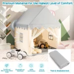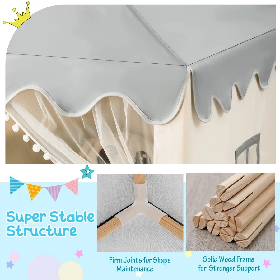 This wooden-frame playhouse tent provides a cozy, imaginative space for kids to read, play, or nap. Featuring a durable solid wood frame, soft cotton mat, and breathable oxford cloth, it’s safe, comfortable, and perfect for indoor or outdoor fun. Easy to assemble, disassemble, and clean, it’s an enchanting addition to any child’s play area.