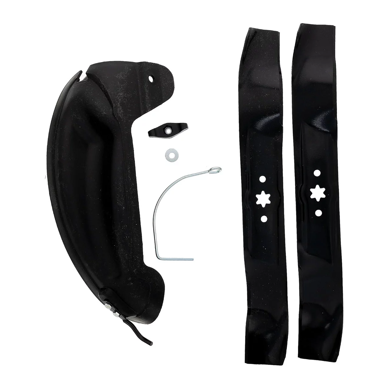 - Includes two mulching blades, molded plug, mounting hardware and instructions. Installs easily.