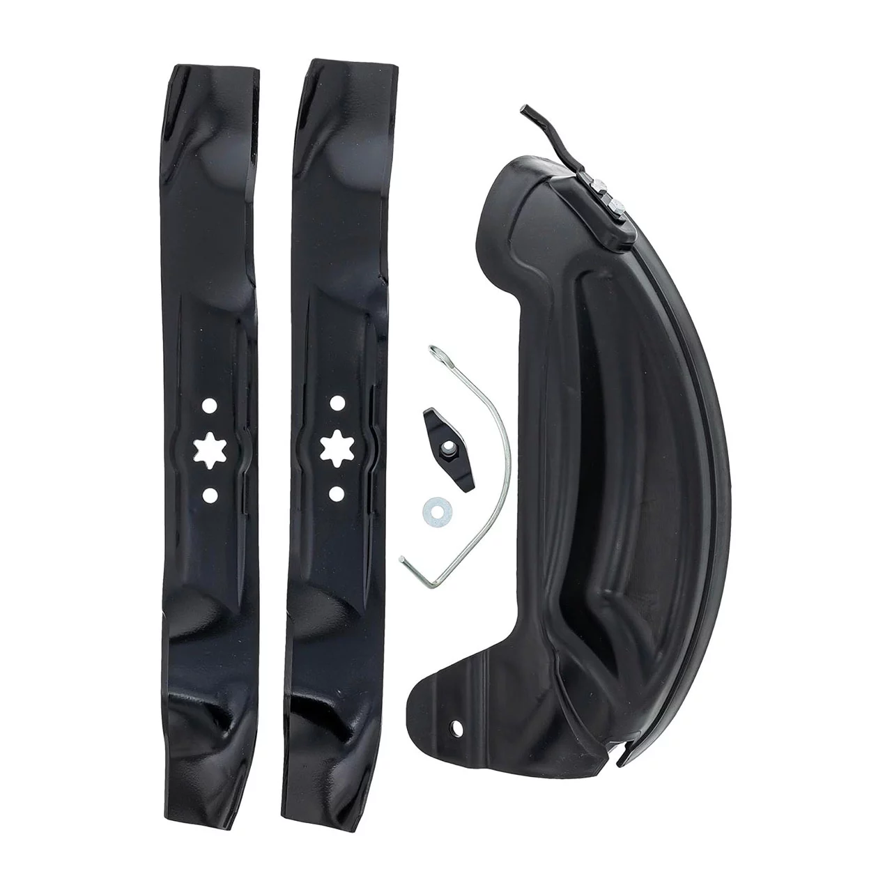 - MULCHING KIT: Contents include two mulching blades with a 6-point star center hole pattern, one molded plug and mounting hardware.