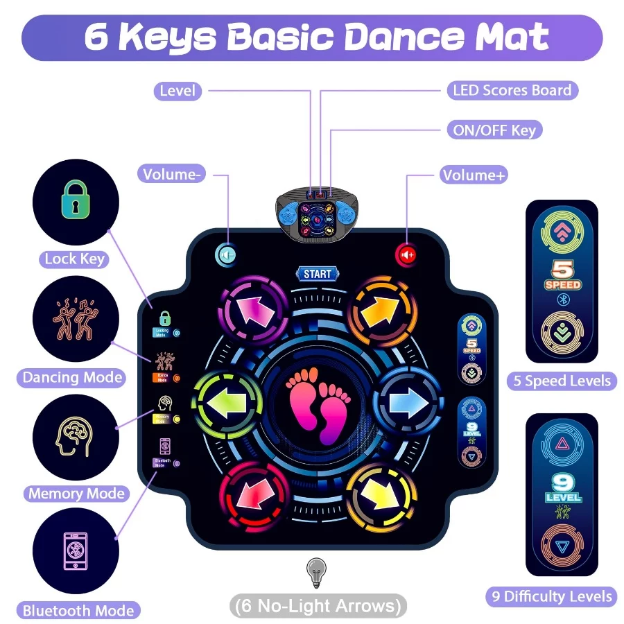Dance Mat for Kids, Electronic Bluetooth Dance Pad with 5 Speeds 9 Levels, Musical Birthday Christmas Gift Toys for Girls Boys 3-10+