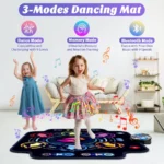 Non-Slip Design for Safe Dance Moves Every Step of the Way. The kids dance mat features a soft, cushioned surface and anti-slip silicone particles on the bottom to handle endless dancing and jumping. It’s made of high-quality, non-toxic PEVA Material, passing CPSIA and ASTM safety standard tests,ensuring it’s safe for kids to use. The waterproof design allows for easy cleaning anytime.