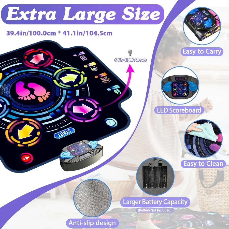 Bring Joy to Kids with a Gift They’ll Love. Looking for the perfect Christmas or birthday gift? This dance mat is not just a kids electronic toys but an educational tool that enhances kids’ hand-eye coordination and thinking abilities through stepping and observation. An ideal gift for occasions like Christmas, birthdays, and Children’s Day.