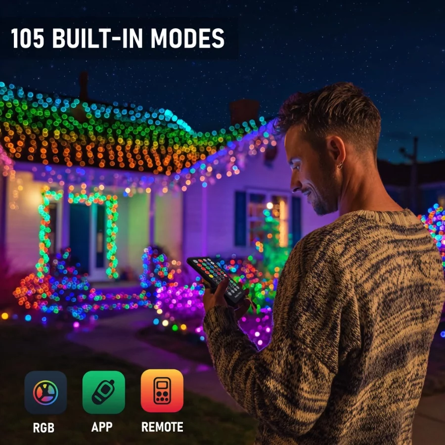 Music Rhythm Sync: Effortlessly manage your Christmas lights from a distance using the “Magic Light” app. Our product also supports the music rhythm function. The lights can change their effects in accordance with the rhythm of the sound, creating a wonderful audio-visual interaction atmosphere.