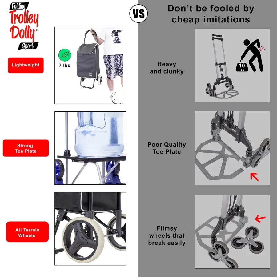Dbest Trolley Dolly Sport – Foldable Grocery Cart on Wheels Multi Use Rolling Cart with Removable Bag and Hand Truck Dolly Function.
