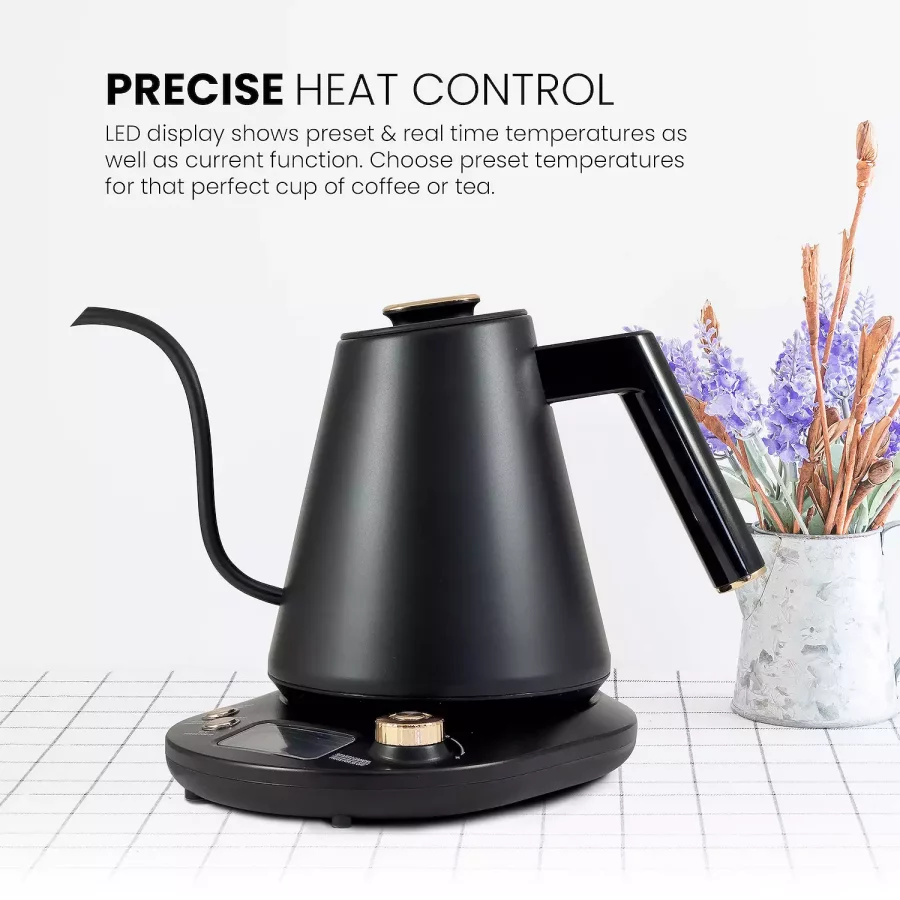 - 90° gooseneck spout ensures precise pouring for coffee and tea