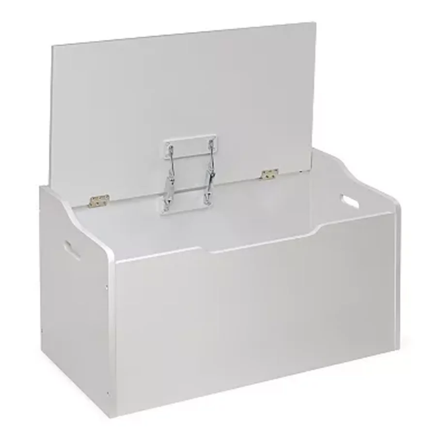 This toy box is nice looking and has the safety hinges so fingers don’t get smashed. I just wish they sold it with a cushion to use as a bench or at least sold it as an add on. That would make this even better!
