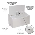 - A safety hinge keeps the lid securely open at any position, protecting little fingers from getting pinched.