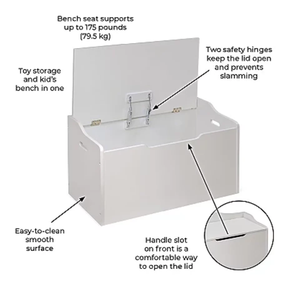 This toy box is nice looking and has the safety hinges so fingers don’t get smashed. I just wish they sold it with a cushion to use as a bench or at l...More