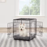 Built with sturdy wire construction, the crate includes two slide-bolt latches for secure closure, a leak-proof removable pan for easy cleaning, and a fold-and-lock design for compact storage. A detachable handle makes it convenient to carry and transport wherever you go.