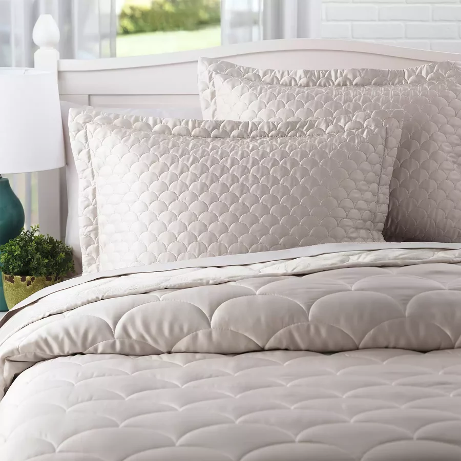 - Elegant Design: Features a solid color pattern with scallop quilting for a sophisticated and timeless look.