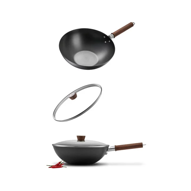 High-quality carbon steel combined with advanced heating technology ensures fast and even heat distribution; it takes less than a minute for the wok to heat up to 356°F, the ideal temperature for stir frying. The Carbonitriding technology makes the wok extremely corrosion-resistant and safe to use with metal utensils. The wok base is suitable for all stovetops, including induction.