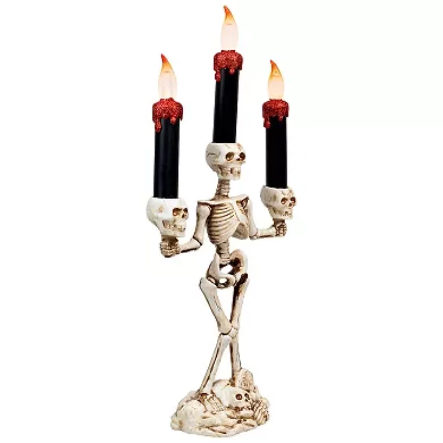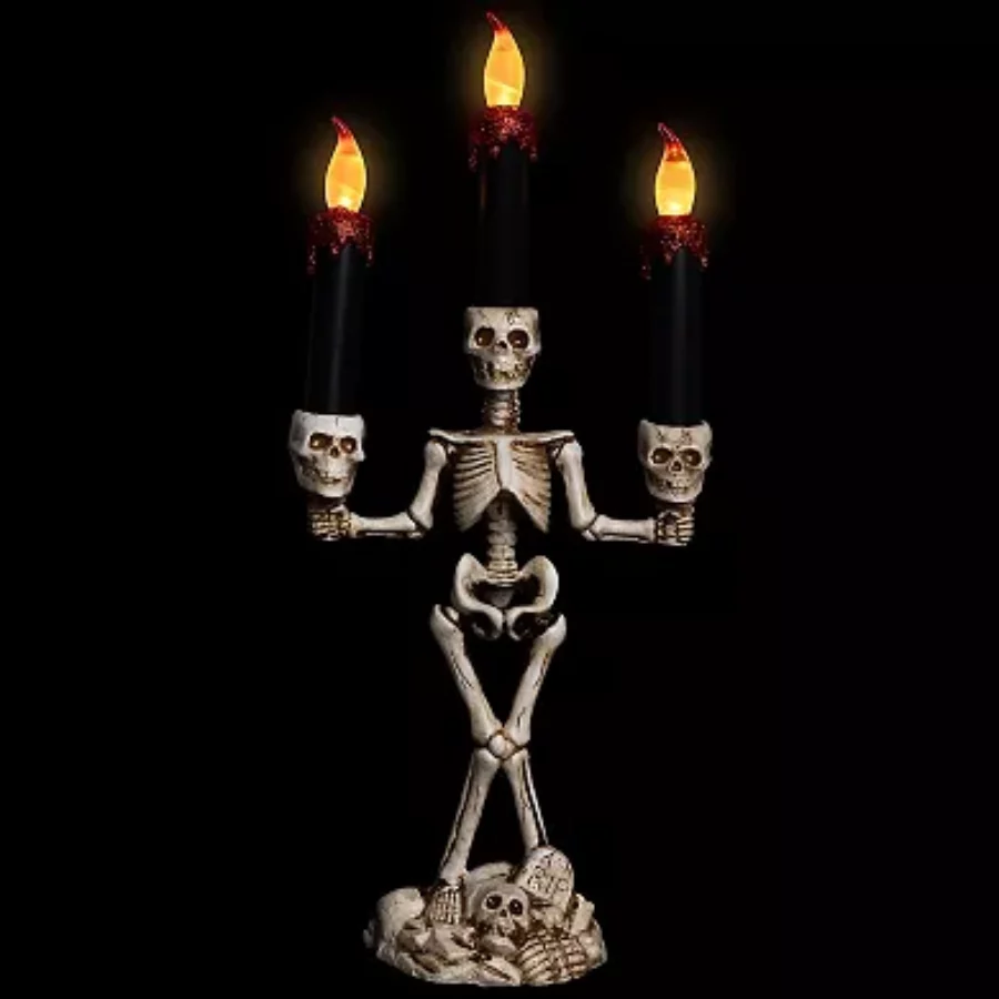 Dripping LED Candle Skeleton Candelabra – Spooky Halloween Tabletop Decoration