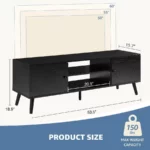 Spacious and Durable – Crafted from high-quality engineered wood, DUMOS TV stand entertainment center measures 53.54″W x 15.75″D x 18.9″H and supports TVs up to 55-60 inches. With a sturdy build and a weight capacity of 150 lbs, it provides reliable, long-lasting support for your entertainment setup.