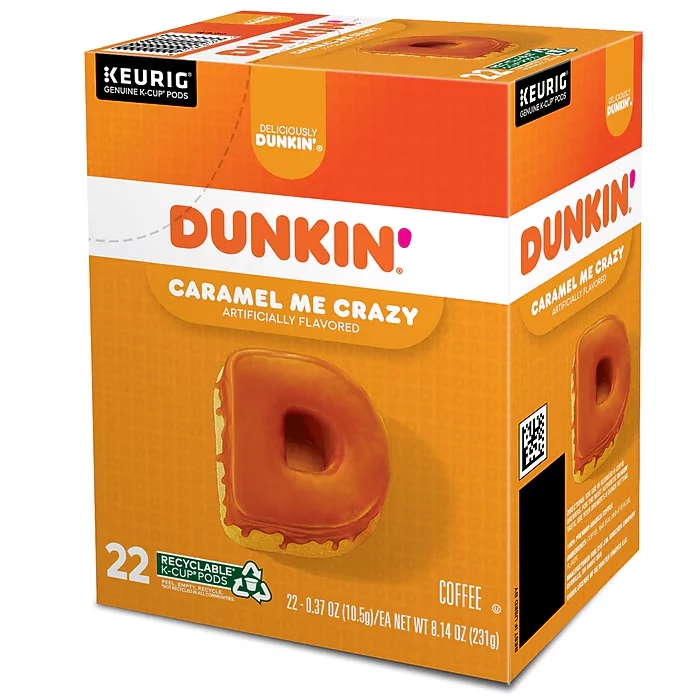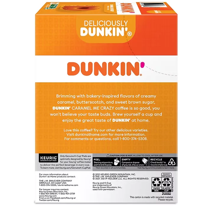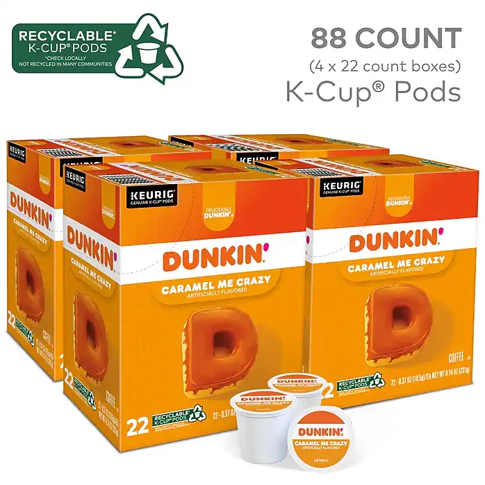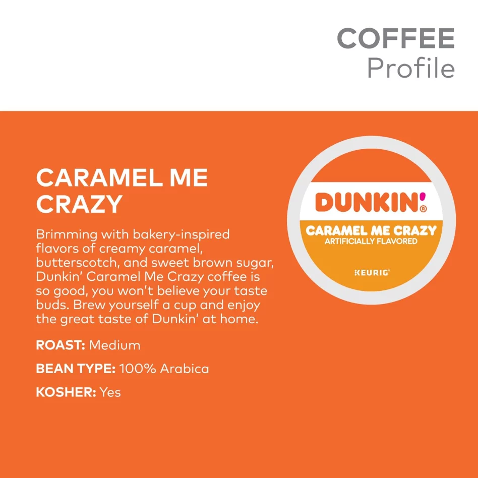 Dunkin’ Caramel Me Crazy Coffee Keurig K-Cup Pods, Medium Roast, Creamy Caramel, Butterscotch & Brown Sugar Flavors, 88 Count/Carton – 100% Arabica, OU Kosher, Bakery-Inspired Indulgence