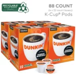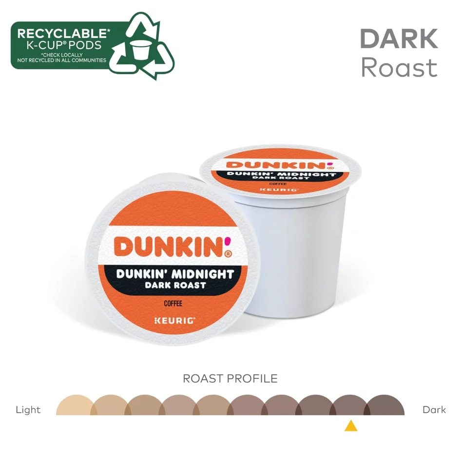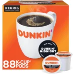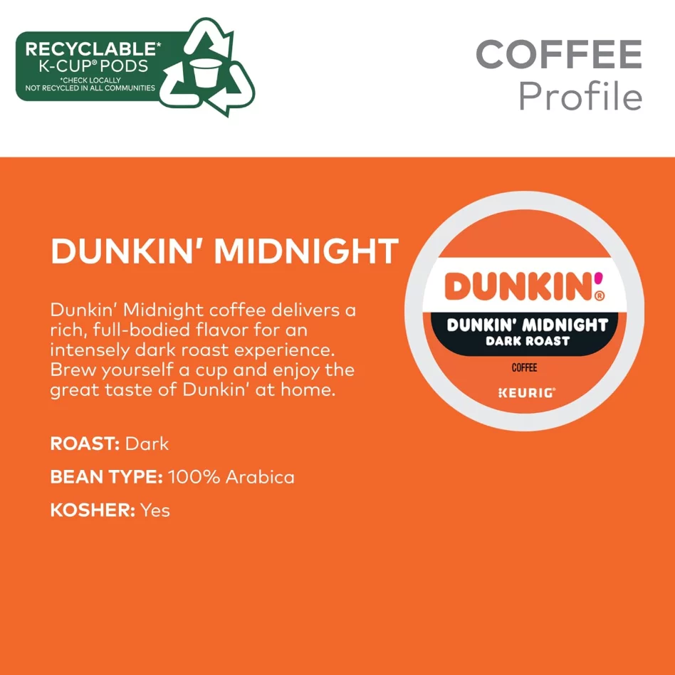 Dunkin’ Midnight Coffee Keurig K-Cup Pods, Dark Roast, Rich Full-Bodied with Bittersweet Chocolate Notes & Intense Finish, 88 Count/Carton – 100% Arabica, OU Kosher, Recyclable Pods