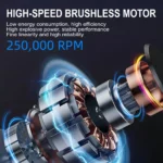 Super-Power Turbo Motor 130,000 RPM : This compressed air duster boasts a maximum speed of 180,000 RPM, delivering air pressure up to 200G and wind speeds exceeding 80 m/s. The ultra-high-speed turbo motor ensures exceptional performance and powerful airflow, allowing you to clean with maximum efficiency. This versatile tool perfect for a wide range of tasks, like daily dusting, drying, removing car water, and even snow clearing, offering strong, practical performance for all your cleaning needs.