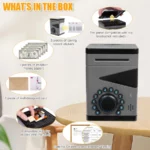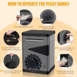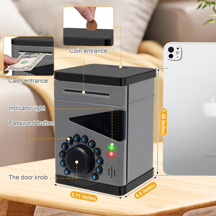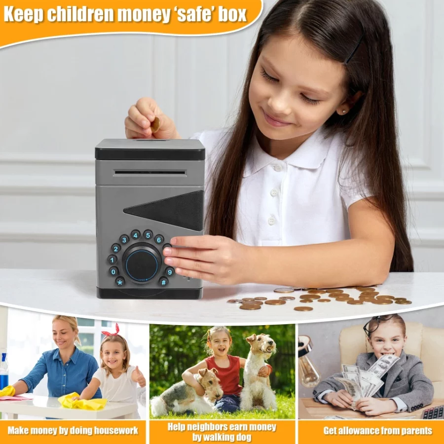 UNIQUE KIDS’ MONEY SAFE BOX: Children need a special place to store their allowance and small treasures, such as jewelry, stationery, or accessories. The kids safe bank serves not only as a fun toy but also as a secret vault, it is a first electronic piggy bank for kids and looks modern and sleek