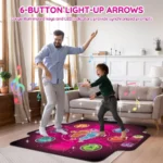 LIGHT-UP 6 BUTTON:The shiny arrow is more convenient to use.kids can step on the flashing arrows to the rhythm of the music, immersing themselves in a new dance game ,providing engaging entertainment and exercise for children.the light-up button adds an extra element of excitement for Kids, It’s so fun to dance .This is the ultimate dance mat for hours of fun, coordination, and exercise !
