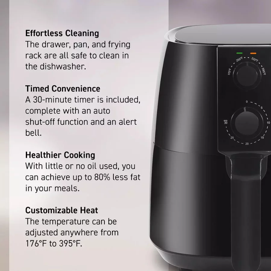 Elite Cuisine 4-Qt Air Fryer – Adjustable Time and Temperature for Easy Cooking