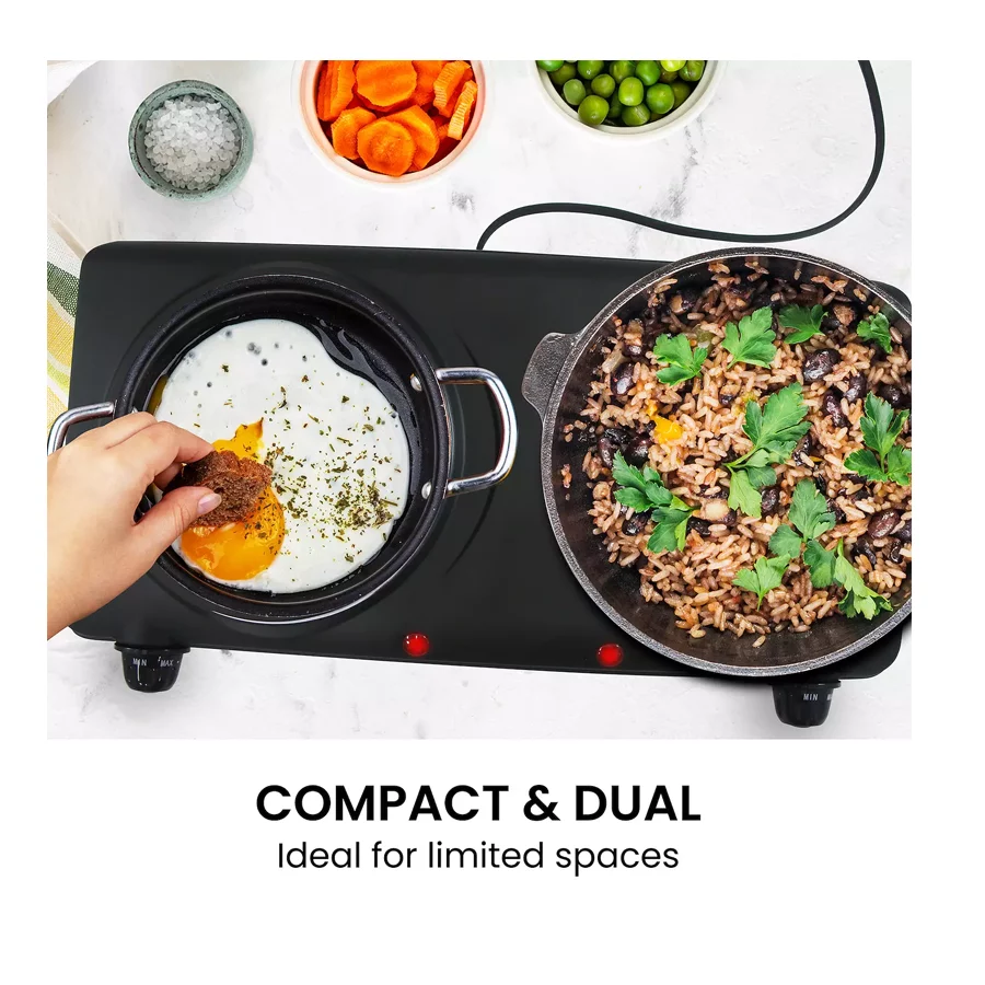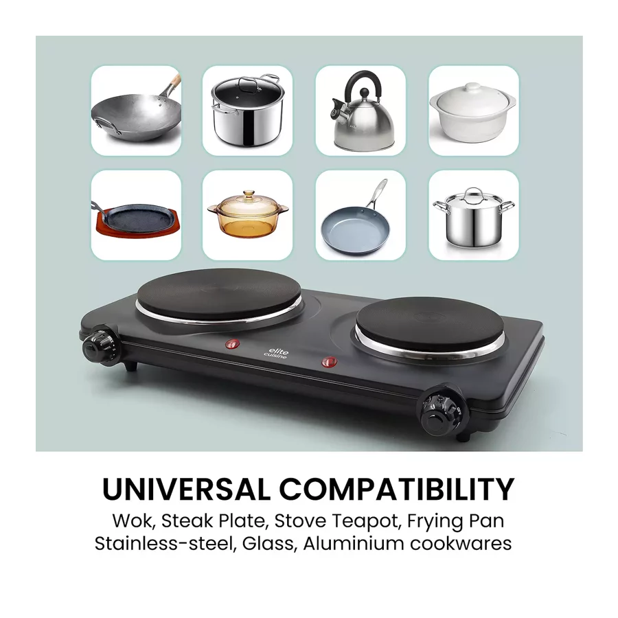 Elite Cuisine Electric Double Burner Hot Plate – Durable, Compact & Easy to Clean