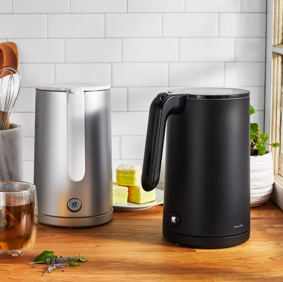 The compact ZWILLING 1.0 Liter Kettle offers all the powerful features of our full-sized Cool Touch Kettle in a streamlined profile, perfect for smaller kitchens and apartment living. The heat insulated double-walled body keeps water hot, longer, while the outside remains comfortably cool to the touch.The seamless, 32-ounce-capacity stainless-steel container with concealed heating element makes this kettle both durable and hygienic. The docking base boasts a handy cord storage for a clean, minimal design that keeps your countertop looking as sleek as the appliances on it.