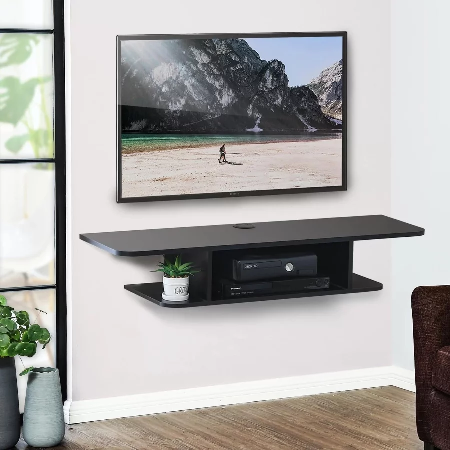 Floating tv stand is not only an ideal for storing routers, set-top boxes, DVD players, etc. But also TV media shelf is an ideal choice for excellent decoration, wall mount entertainment centers can perfectly fit all your furniture. Suitable for home, restaurant, hotel, office.
