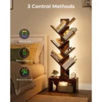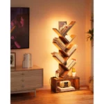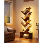 Evermagin 6-Tier Shelf Corner Tree Bookshelf with LED Lights Floor Standing Wood Bookcase Storage Organizer for Living Room.