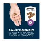 Natural fiber and prebiotics aid digestion and nutrient absorption, and the Ora-Shield System® crunchy kibble texture helps reduce plaque and tartar buildup for better dental health. Every serving supports skin, coat, joint, immune, and digestive health — with no added artificial colors, flavors, or preservatives.