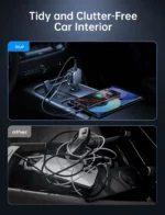 Sized at just 1.5 x 2.09 x 2.62 inches, this charger is 50% smaller than previous models and fits discreetly into car interiors. Its 180° adjustable head ensures a secure fit in cigarette lighters measuring 0.79 inches wide with a 2.76-inch depth. The built-in retractable cables stretch up to 31.5 inches, providing convenience without mess.