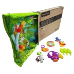 10+ repositionable toys and activities: plush monkey, self-discovery mirror, soft jingle lion, rollerball snail, clacker zebra and more