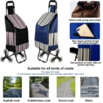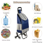 Heavy Duty & Waterproof: This grocery trolley stair climbing shopping cart is made of sturdy plastic handle with rust-proof aluminum alloy frame and durable rubber wheels, stronger and lighter. The bag of the shopping cart is made of waterproof material. Super loading grocery shopping cart can keep the contents dry from the rain snow and the other forces of nature.