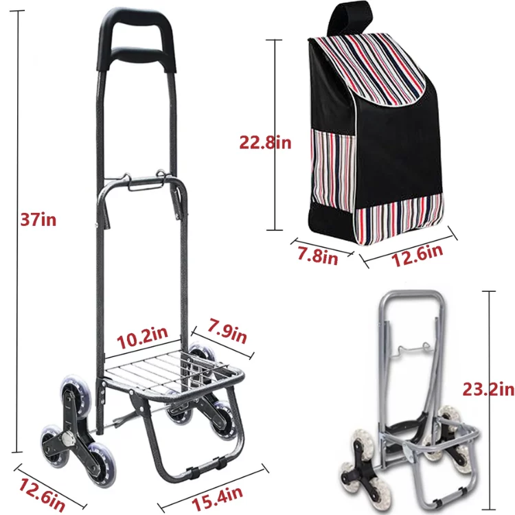Compact Dimensions: The frame measures 26 cm x 45 cm x 94 cm when unfolded, and the bag size is 32 cm x 20 cm x 58 cm, offering ample space for groceries and other items.