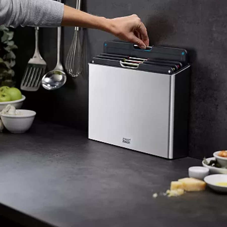 This a my second set of Joseph-Joseph cutting boards. They’re great quality and the color coding makes them easy to use for different purposes. The folio keeps them well organized and looks great on a countertop.