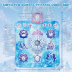Experience a Captivating Dance Adventure Where Every Little Girl’s Princess Dreams Come True with 8-button Frozen Toys Dance Mat — Designed specifically for girls who love dancing or dream of being a princess, Surelect princess dance mat features 8 buttons(crown, magic wand, castle, princess dress/necklace/shoes pattern)that synchronize perfectly with enchanting melodies, creating an immersive dance experience. Let your little girl immerse herself in her princess dream, leaving behind a dreamy, magical, and unforgettable childhood.