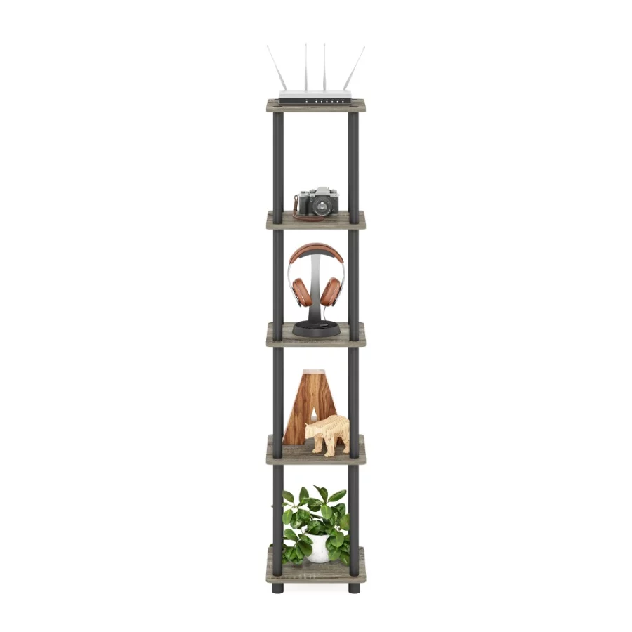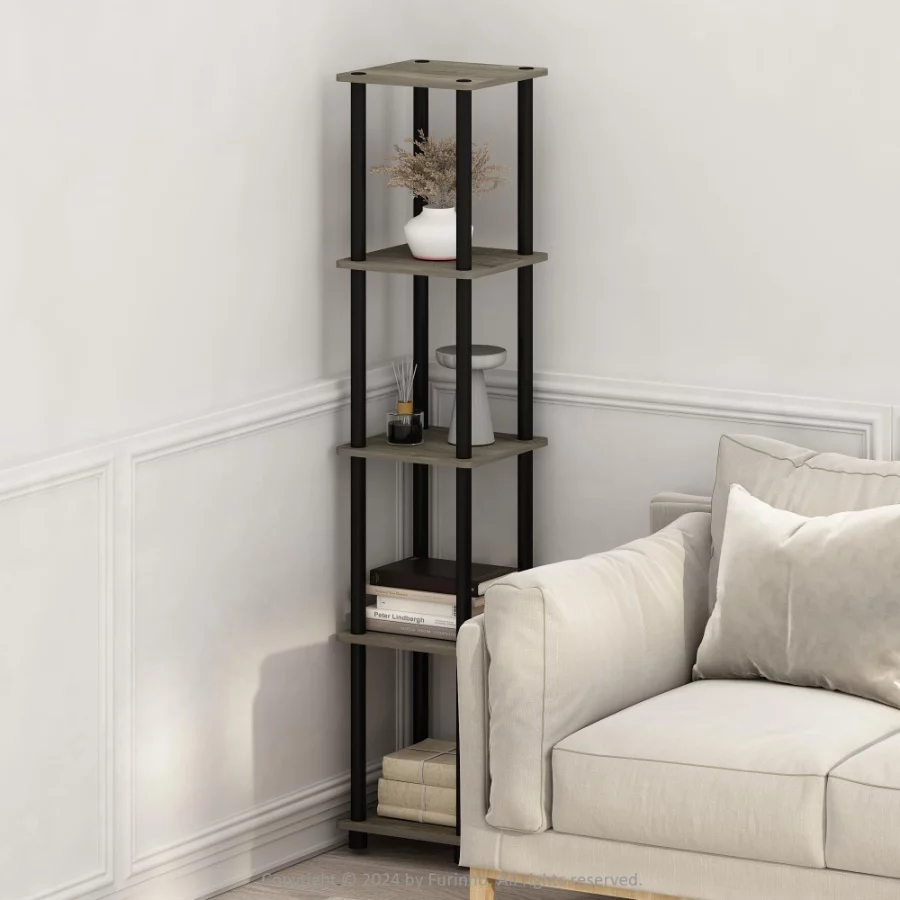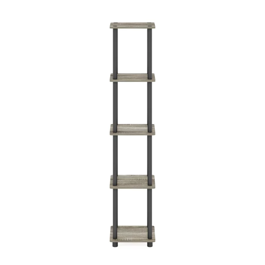 FURINNO Turn-N-Tube 5-Tier Corner Shelf, Square Rack Display Bookcase Storage Organizer for Living Room, Bedroom, Office.